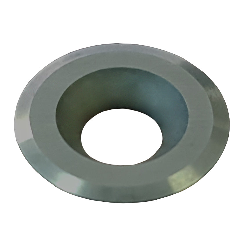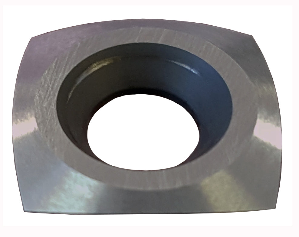 Rake is the angle of a tool relative to its cutting surface, and most turning tools have a zero (or neutral) rake. These tips have a negative rake, so the face of the cutting tool slopes away from the cutting edge. The geometry makes a cut less aggressive, therefore safer; the negative rake angle virtually eliminates chatter and chipping.